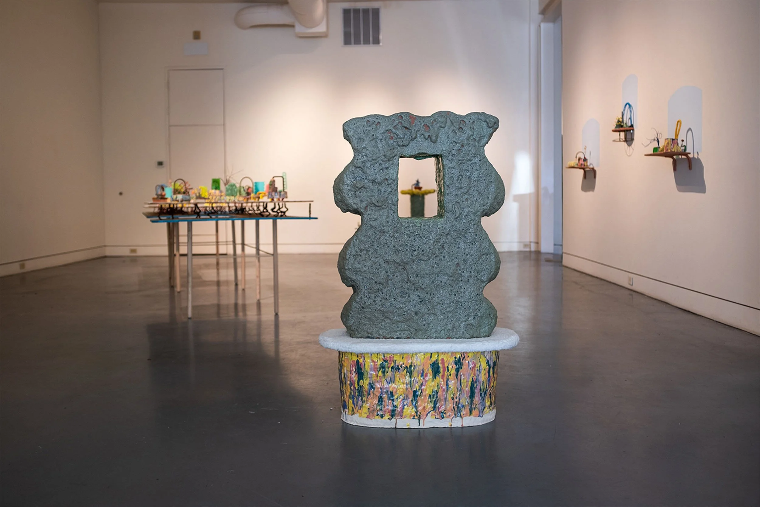 Sparks fly when I encounter a vibrant fragment of waste rendered invisible to the average passerby. With an activated mind, I am drawn to the pops of color, values and forms littering our landscape. With these curious shards I amass a library of refuse. Through a repository of found and made objects, I craft a world that seeks to reveal the value of junk cohabitating with us. Working in the framework of play, my practice utilizes found objects and a multitude of processes rooted in the foundations of the ceramic medium. Through my assembly process I create playful ceramic sculptural objects that speak to our current moment of living in the Anthropocene. Living amid ongoing ecological crises involving pollution and global warming, my sculptures operate as micro landscapes finding alternative ways to view detritus, rehabilitating junk through art and aesthetics. In opposition to the fast pace of our capitalistic society built on convenience and disposability, the assembly process of my work is slow. From foraging to constructing, the unhurried observations in my practice enhance and reinforce the curiosity in the environments I inhabit, as I process the decay, beauty, and toxicity of our waste.