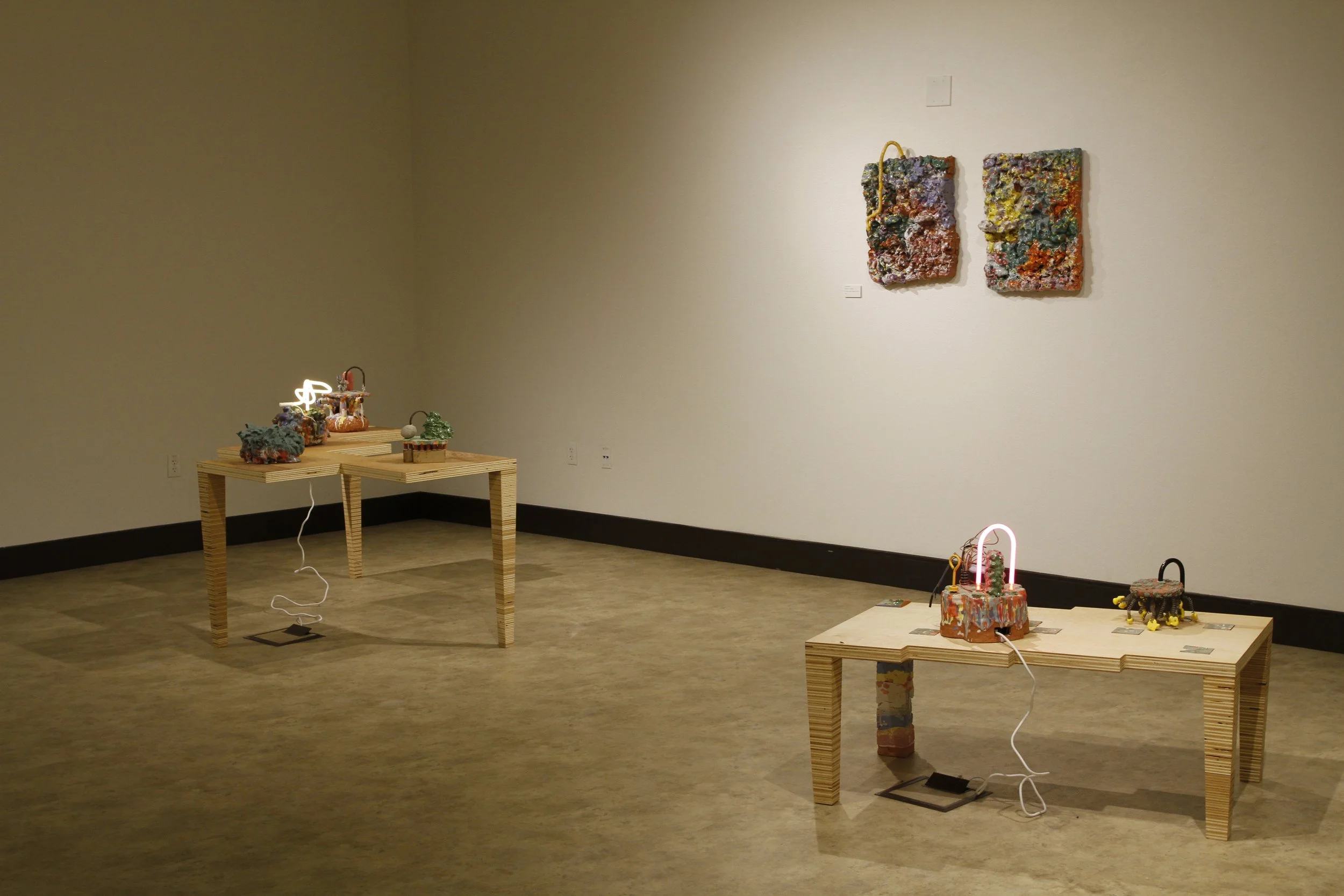 Amid the ecological pressures of the Anthropocene, my work offers alternative ways of seeing waste, rehabilitating junk through art and aesthetics grounded in wonder, care, and hope. In opposition to a fast, disposable culture, my process is intentionally slow—from foraging to construction—deepening my attention to the decay, beauty, and toxicity surrounding us. Remnants of Future Landscapes uses play as both a visual tool and a way of being, imagining future terrains while engaging with the remnants of our past.